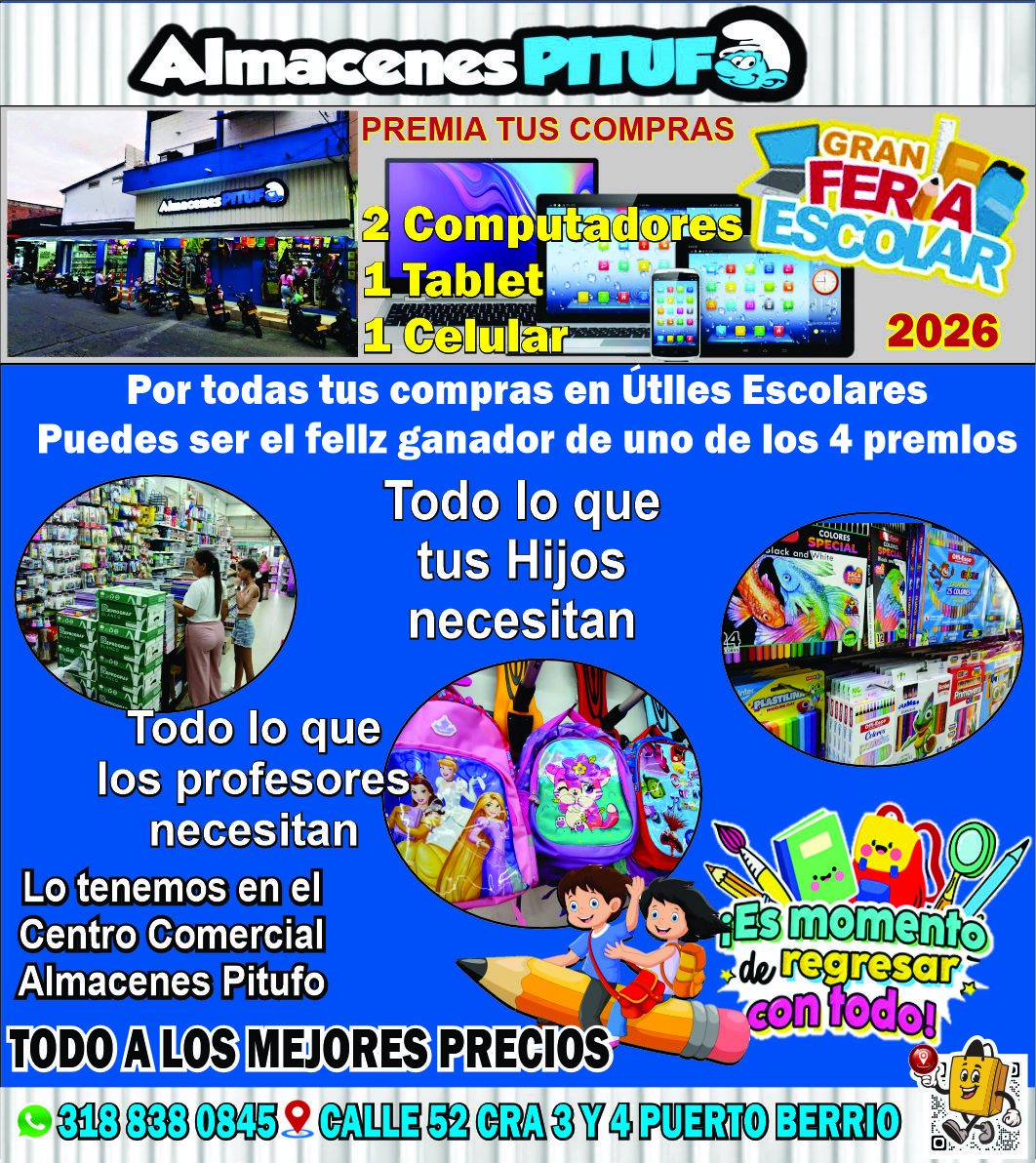 Centro comercial Almacenes Pitufo<div>Gran feria Escolar </div><div>donde encuentras todo lo que tus hijos necesitan par el regreso a clases <br><div>Con mas de 10.000 artículos par el hogar y la familia, con precios que se acomodan a su bolsillo</div></div>