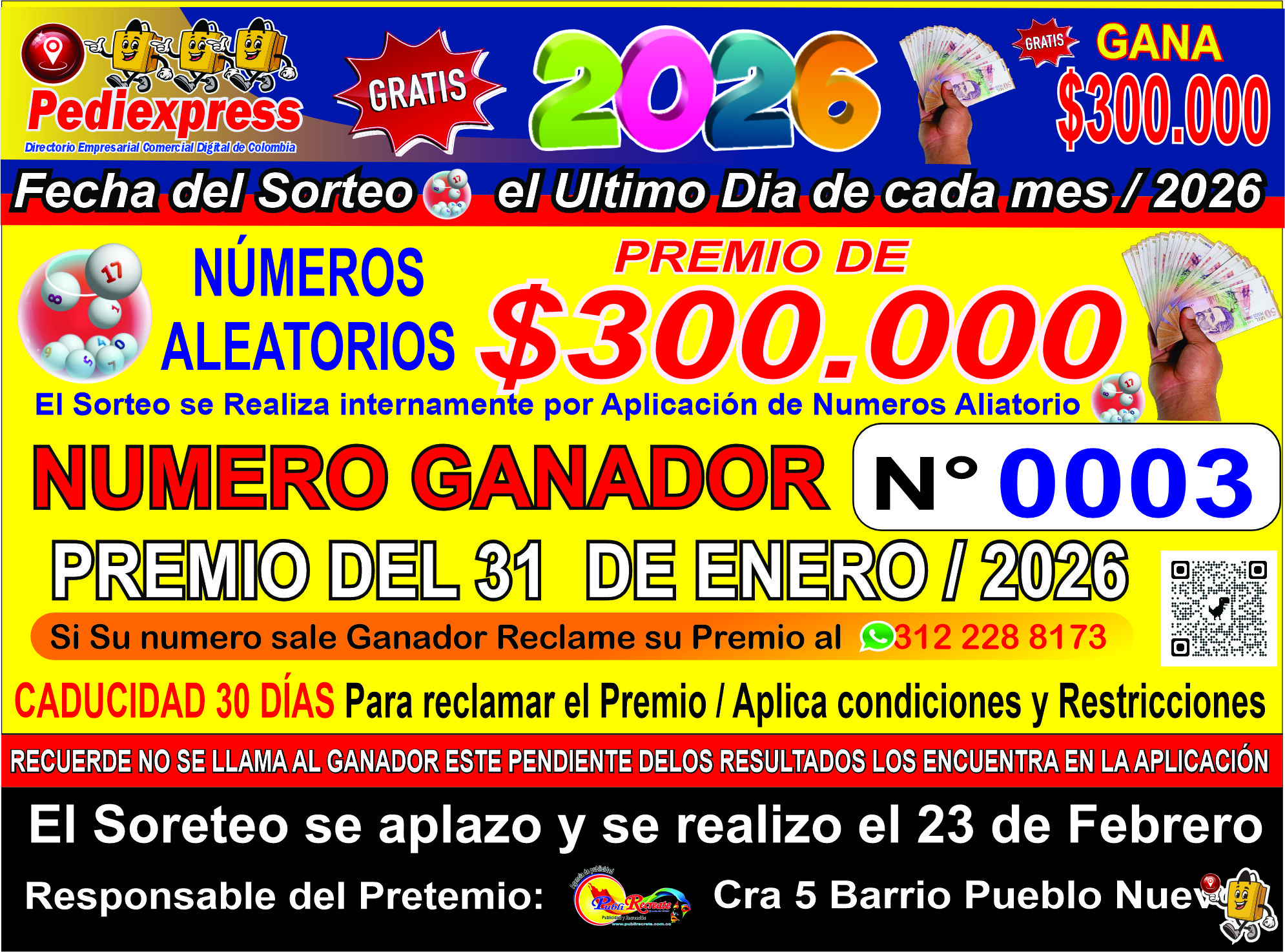 RESULTADOS SORTEO DE LA REVISTA COMERCIAL PEDIEXPRESS 31-01-2026