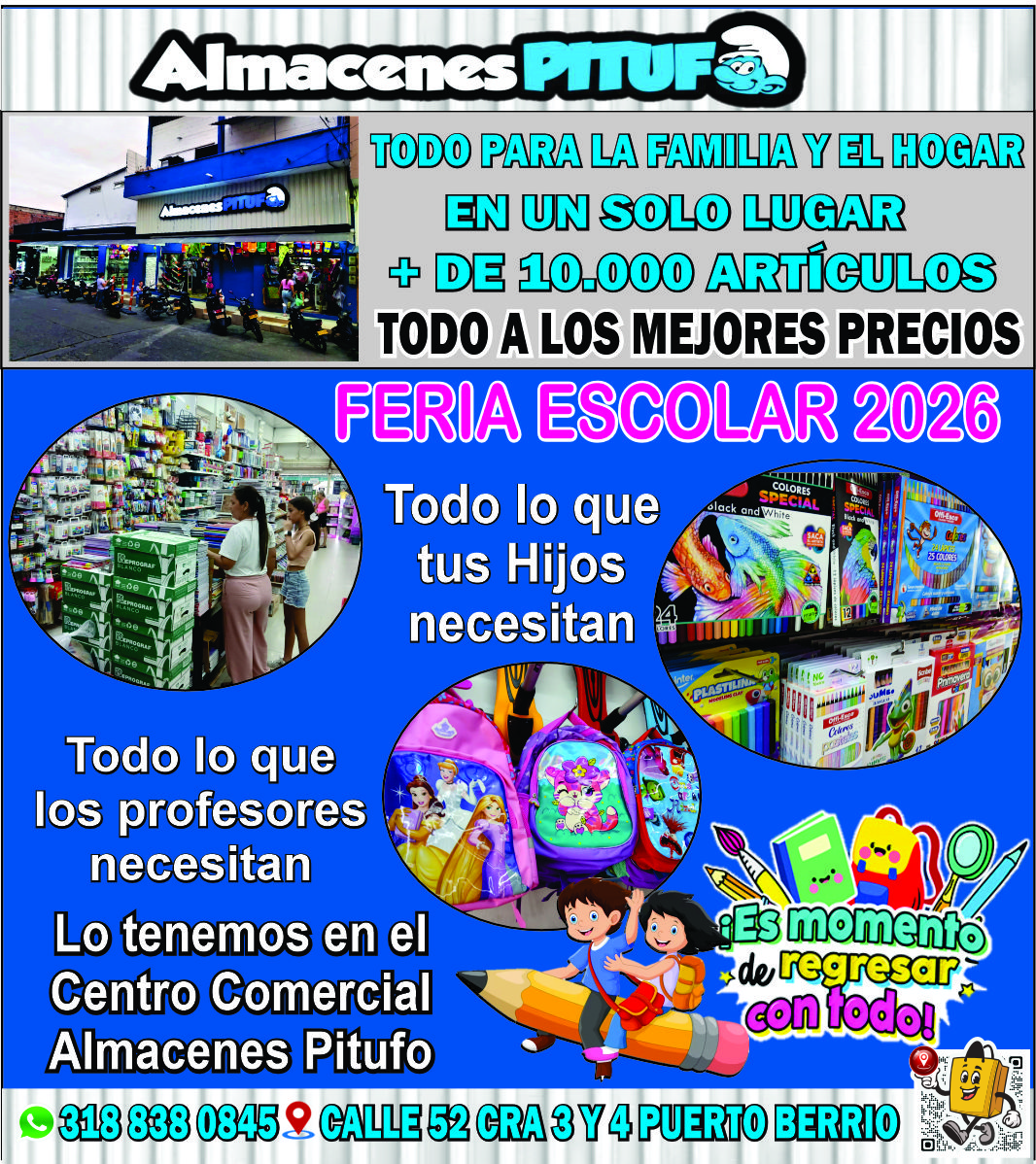 Centro comercial Almacenes Pitufo<div>Gran feria Escolar </div><div>donde encuentras todo lo que tus hijos necesitan par el regreso a clases <br><div>Con mas de 10.000 artículos par el hogar y la familia, con precios que se acomodan a su bolsillo</div></div>
